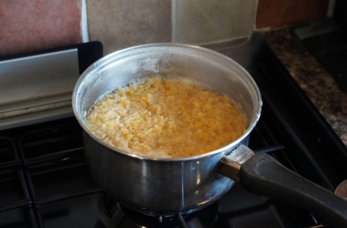 Když voda s hrachem nebo fazolemi dosáhne bodu varu, přidejte do ní kousek másla, případně trochu rostlinného oleje (máslo však pokrmu dodá mnohem lahodnější a jemnější chuť). Tuk na hladině vytvoří film, čímž vodu „uzavře“ a teplota se může ještě o několik stupňů zvýšit. Jídlo je tak uvařené mnohem rychleji.
