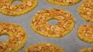 Arašídová kolečka pečte v předehřáté troubě na 180 °C po dobu 15 minut.