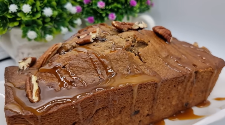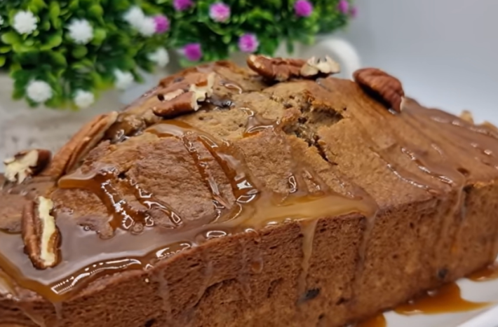Formu na přípravu biskupského chlebíčku nebo tunel vymažte pořádně máslem, vylijte připravené těsto do pečící nádoby a dejte péct do předehřáté trouby na 180 °C. Těsto můžete zkontrolovat pomocí špejle, po dopečení nechte vychladnout, před podáváním dozdobte karamelem a vlašskými ořechy. Upečený banánový chlebíček je měkký a nadýchaný, voní po ovoci i kávě a výtečně se hodí jako dezert k odpolednímu posezení.