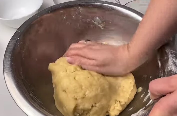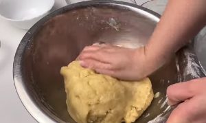 Dejte mouku do mísy. Přidejte rozpuštěné máslo, droždí, moučkový cukr, mléko a 1 žloutek. Rukama vypracujte hutné nelepivé těsto. Pak ho přikryjte a nechte hodinu kynout.