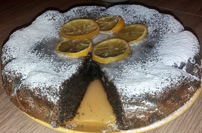 Vymačkejte šťávu z jednoho citrónu, smíchejte ji s přibližně jednou polévkovou lžící mléka a přisypejte moučkový cukr. Vše rozmíchejte do hladké, mírně tekuté a jemně průsvitné hmoty, kterou rozlijte po celém povrchu makového dortu. Pokud chcete, na závěr jej ještě posypejte moučkovým cukrem a ozdobte plátky citrónu, nechte polevu ztuhnout a podávejte.