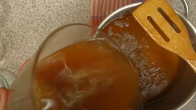 Sklenice vložte do hrnce, vyloženého utěrkou, do kterého vlijte tolik vody, aby její hladina dosahovala do ⅔ výšky sklenic. Tekutinu poté zavařujte při teplotě 80 °C po dobu 15 minut. Pak sklenice vyjměte a nechte je vychladnout dnem vzhůru.