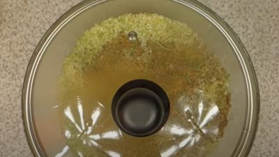 Poté květy přeceďte a vymačkejte z nich maximum šťávy, kterou budete později potřebovat. V samostatném hrnci smíchejte vodu s cukrem a směs zahřívejte asi 3 minuty, dokud se cukr zcela nerozpustí.