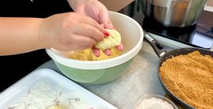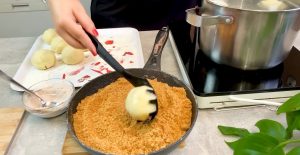 Bramborové knedlíky plněné švestkami a balené v restované strouhance - postup přípravy