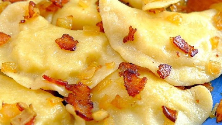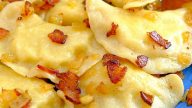 Postup opakujte, dokud budete mít ingredience a bramborové pirohy vařte v osolené vodě 3 minuty. Poté je vyjměte a podávejte posypané smaženou slaninou s cibulí.