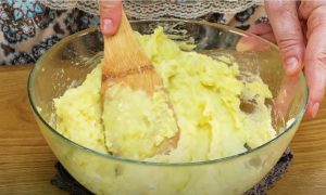 Uvařte brambory ve slupce a po vychladnutí je oloupejte a rozkrájejte na menší kusy. Dejte je spolu s trochou soli do mísy a rozšťouchejte je šťouchadlem na brambory. Poté k nim přidejte vejce, najemno nasekanou petrželku a vše opepřete. Nakonec přidejte hladkou mouku a prášek do pečiva a zpracujte do hladkého těsta. Vyndejte těsto z mísy, její dno poprašte moukou, vraťte těsto do mísy, zakryjte ho fólií a dejte na 20 minut do lednice.