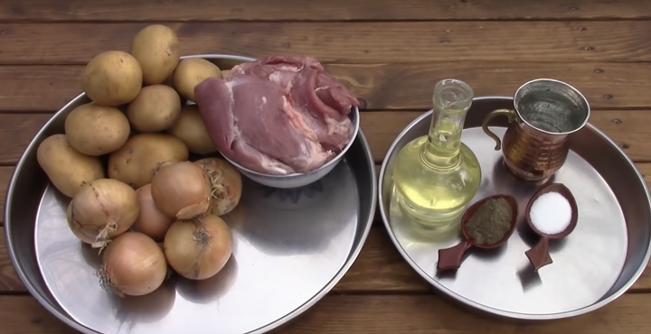Brambory v kotlíku s masem a cibulí po sibiřsku - postup přípravy
