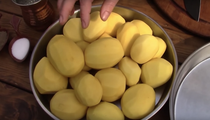Oloupejte brambory, které by měly být přibližně stejně veliké, aby se uvařily všechny za stejnou dobu.