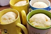 Bílky vyšlehejte do pevného sněhu, který jemně vmíchejte do žloutkového těsta. Vše rozdělte do čtyř sádlem vymazaných hrnků tak, aby těsto dosahovalo asi do tří čtvrtin jejich výšky. Hrnky vložte do hrnce s vroucí vodou, která dosahuje 2 cm pod jejich okraj, a nechte knedlíky vařit 33 minut. Jinou možností je vložit hrnky s těstem po jednom do mikrovlnné trouby a na maximální výkon je zde nechat asi 3 až 6 minut.