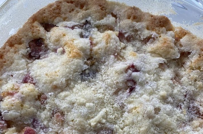 Velmi chutný a rychlý koláč lze upéct z jednoduchého těsta s broskvemi sypaného drobenkou. Recept na něj nám poskytla paní Aneta Mühlhandlová, která jej zdědila po své babičce.
