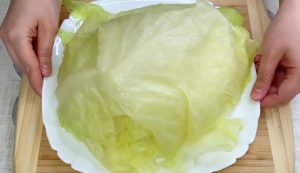 Ze zelné hlávky odřežte stopku a nechejte ji vařit ve vroucí vodě po dobu 10 minut. Po vytažení ji rozdělte na jednotlivé listy. Cibuli rozmixujte či nakrájejte nadrobno. Mrkev nastrouhejte.