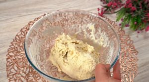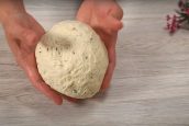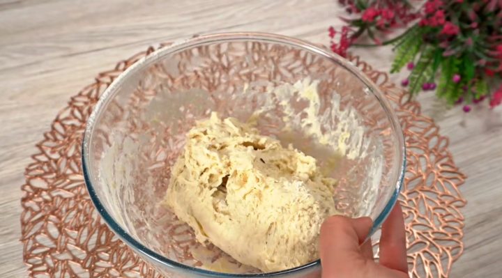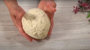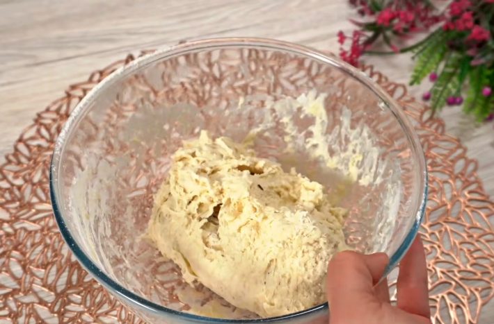 Pracovní plochu i své ruce potřete trochou oleje a hněťte těsto tak dlouho, dokud nezíská nelepivou strukturu. Pak vytřete olejem i misku, vložte do ní těsto zformované do bochánku a nechte 1 hodinu v teple kynout. Vykynuté těsto naolejovanýma rukama vyjměte z misky a znovu jej trochu prohněťte.
