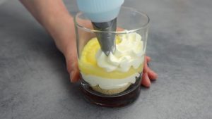 Připravte si skleněné pohárky nebo skleničky. Na jejich dno vložte trochu sušenkové drti, tu zakryjte vrstvou smetanového krému a na něj vymáčkněte ze zdobicího sáčku krásnou vrstvu citrónového pudinku. Takto vrstvy ještě několikrát zopakujte a povrch dezertu posypejte, čímkoliv chcete (kokosové vločky, strouhaná čokoláda, prášek z citronové kůry atd.)
