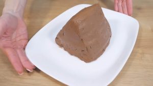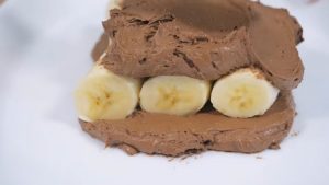 Oloupejte tři žluté až mírně flíčkaté banány (uvnitř ale musejí být stále žluté) a odřízněte z nich oba konce. Na servírovací talíř navršte hromádku čokoládového smetanového krému a rozetřete ho do proužku o délce banánů. Na čokoládový pruh položte tři banány tak, aby ležely těsně vedle sebe. Na banány pak opět navršte vrstvu smetanového krému. Navrch pak položte další dva banány, opět je pomažte krémem a vše zakončete jedním banánem a poslední vrstvou krému.