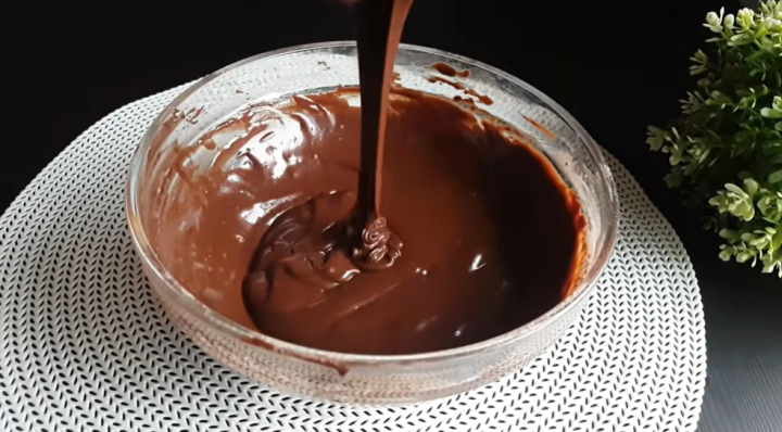 Do hluboké misky vyklepněte dvě vajíčka, přidejte k nim špetku soli a jeden balíček vanilkového cukru. Odměřte si ke směsi pět polévkových lžic krystalového cukru a metličkou vše velmi dobře promíchejte do hladké směsi. Přidejte pět polévkových lžic oleje, nejlépe řepkového nebo jiného chuťově neutrálního. Znovu všechny ingredience dobře promíchejte. Nyní přidejte pět polévkových lžic mléka, které opět rozmíchejte do směsi. Odměřte si do jiné misky pět polévkových lžic hladké mouky, k ní dodejte tři polévkové lžíce kakaa a 7 gramů prášku do pečiva. Všechny suché ingredience lžící promíchejte do homogenní směsi, kterou pak přes jemné sítko prosejte do mísy s tekutými ingrediencemi. Metličkou pak suché přísady dobře zapracujte do jednotné směsi s vaječnou směsí a vytvořte tak polotekuté, husté těsto.