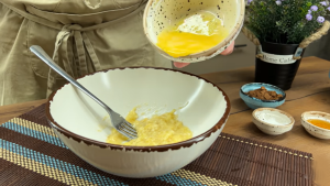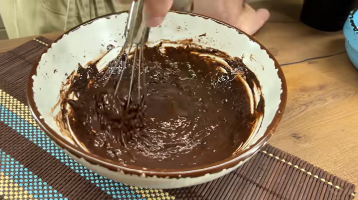 Banán funguje v receptu jako hutná a zároveň sladká část. Díky tomu dokáže nahradit mouku i cukr zároveň. Banán s vejcem promíchejte metličkou, dokud se suroviny dokonale nespojí a nezískáte hladkou směs. Následně přes sítko do směsi prosejte kakao a přidejte prášek do pečiva. Metličkou vše znovu důkladně promíchejte, ale těsto nesmíte přemíchat.