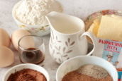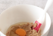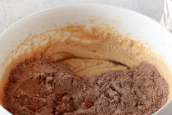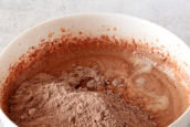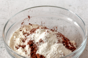 Nejdřív dejte mouku, prášek do pečiva a kakao do samostatné mísy. Vše promíchejte.