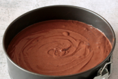 Výsledkem bude hladké těsto. Vezměte plech a na jeho dno dejte pečicí papír. Těsto přesuňte do formy, zarovnejte stěrkou a dejte péct do trouby předehřáté na 180 stupňů a po dobu 50 minut.