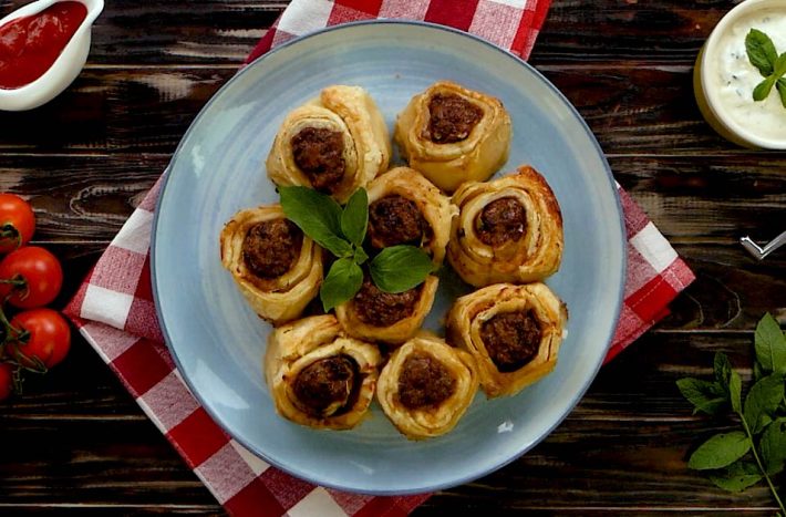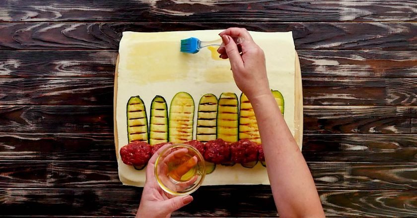 Dny jsou stále chladnější a takové počasí si vyžaduje teplé a vydatné jídlo. Pokud vám docházejí nápady a omáčky s knedlíkem už vás nudí, pak pro vás máme tip na cuketovou rolád plněnou mletým hovězím masem a zabalenou v listovém těstě a doplněnou o omáčku z řeckého jogurtu. Kombinace masa, zeleniny a jogurtu je jednoduše báječná, nehledě na to, že tento pokrm se neztratí ani na slavnostním stole.