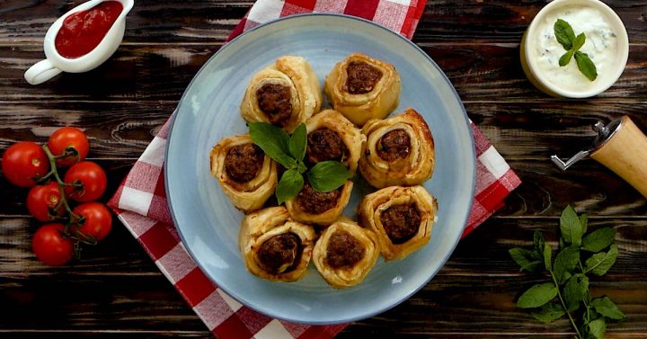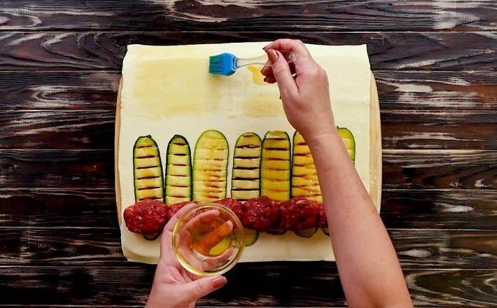 Cuketové rolky s mletým masem v listovém těstě - postup přípravy