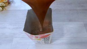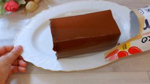 Do misky nasypejte potravinářskou želatinu a promíchejte ji s trochou vody. Jakmile nabobtná, přidejte ji do mísy s čokoládovou hmotou na sporáku a důkladně míchejte tak dlouho, dokud směs nezhoustne na konzistenci pudinku. Hotovou směs vlijte do formy na biskupský chlebíček, případně odřízněte horní část krabice od mléka a vlijte hmotu do ní jako do formy.