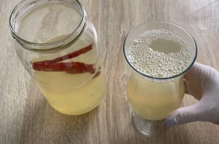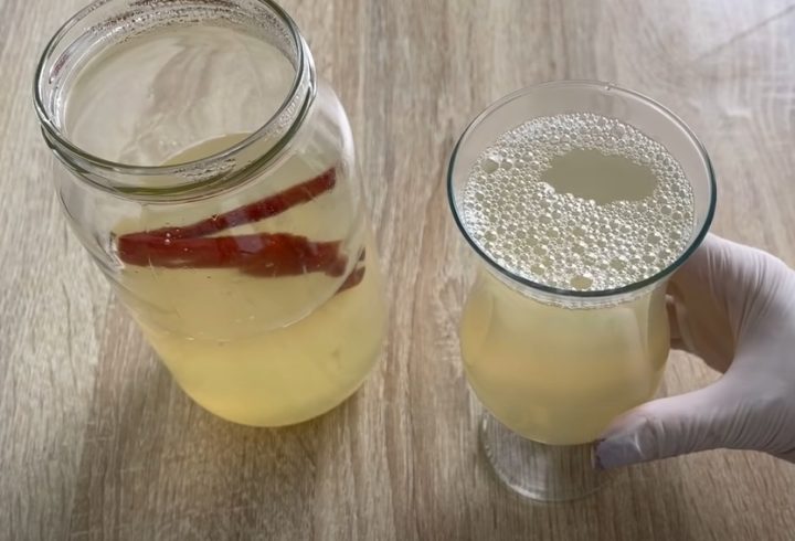 Opláchněte je ve studené vodě a nakrájejte na kostičky, poté je přihoďte k jablkům do hrnce. Zalijte litrem vody a nechejte na 20 minut provařit. Mezitím si nachystejte zavařovací sklenici a dejte do ní 2 tyčinky skořice. Po dovaření sceďte koncentrát do sklenice se skořicí, tu zavřete, zabalte do utěrky a nechejte 30 minut louhovat. Poté máte hotovo.