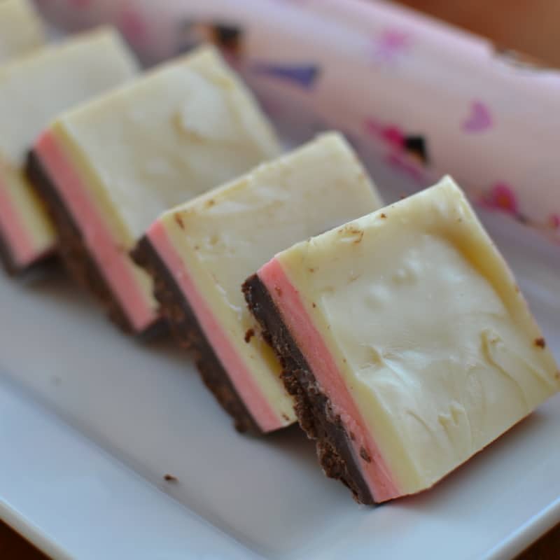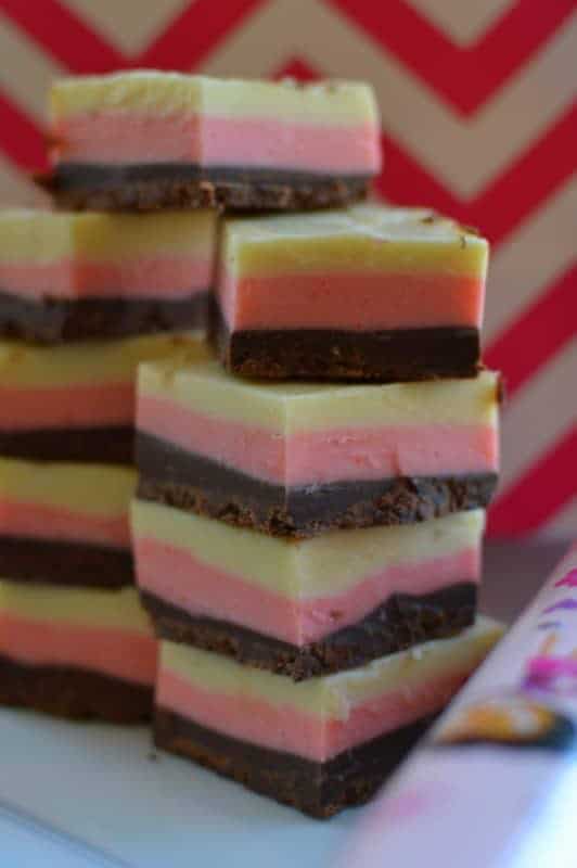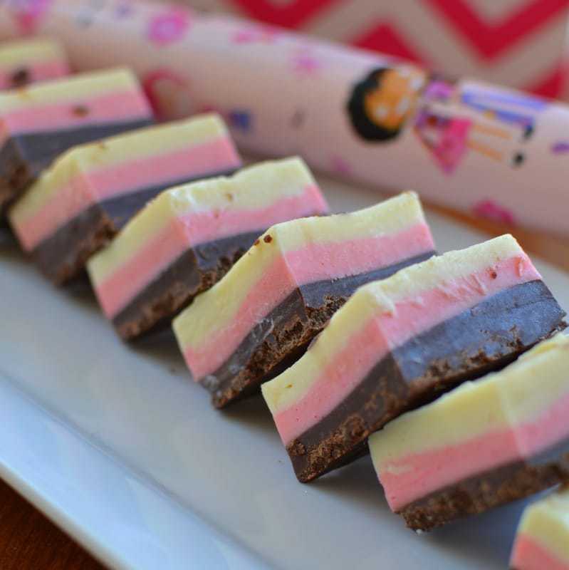 Ingredience pro každou vrstvu střídavě dávejte do mikrovlnné trouby na dobu 1-2 minuty, dokud se čokoláda nerozpustí. Interval mezi přípravou vrstev je 40 minut, aby došlo k úplnému ztvrdnutí. Pamatujte, že hmota musí být vždy v nádobě rovnoměrně rozložena. Až bude vše ztuhlé, stačí jen trochu nahřát nůž a dezert nakrájet na kostky nebo proužky. Chcete-li trochu experimentovat, můžete změnit počet vrstev a přidat do nich ořechy, rozinky, sušené švestky nebo kandované ovoce. Udělejte si dezert podle svého a pořádně si ho vychutnejte.