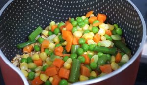 Ta by měla obsahovat mrkev, hrášek, fazolky a kukuřici. Zalijte vše vodou, přiklopte hrnec pokličkou a vařte polévku, dokud zelenina v ní nezměkne. Dle vašich potřeb můžete do polévky přidat i více vody. Jakmile je zelenina měkká, polévku dochuťte oreganem, italskými bylinkami, solí a mletým černým pepřem.