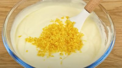 Směs vložte do lednice a mezitím, co se bude chladit, vyšlehejte smetanu dotuha. Do ní poté vešlehejte citronovou směs s citronovou kůrou a pochoutku vložte do mrazáku na minimálně 3 hodiny.