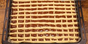 Domácí dvoubarevný mřížkový koláč se sladkým tvarohovým pudinkem - postup přípravy