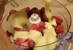 Mražené jahody dejte do mixéru, přilijte k nim kondenzované mléko a obojí společně promixujte, dokud nezískáte hladké pyré. Poté zmrzlinu naneste do libovolné nádoby a tu zakryjte pečicím papírem a potravinářskou fólií. Dejte zmrzlinu zamrazit do mrazáku a poté ji můžete podávat, dobrou chuť!