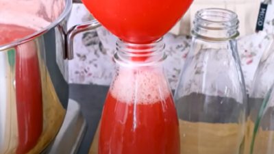 Poznámka: V tomto receptu kuchařka láhve sterilizovala v troubě, při teplotě 100 °C, po dobu 30 minut. Víčka byly sterilizovány ve vroucí vodě po dobu 10 minut.