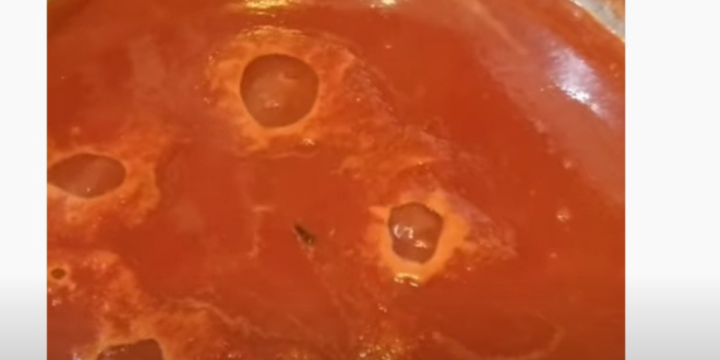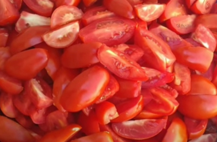 Hrnec s rajčaty postavte na kamna, přiklopte pokličkou a přiveďte je k varu. Když začnou bublat, snižte žár na střední úroveň a za občasného míchání je duste kolem 40 až 50 minut. Jakmile se začne oddělovat šťáva od rajčatové dužniny, můžete hrnec odstavit z kamen a nechat trochu zchladnout.