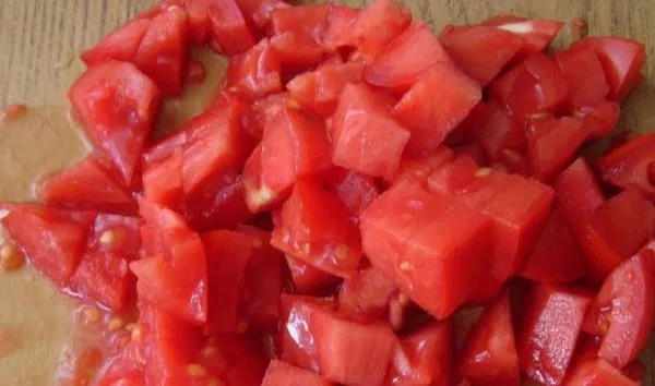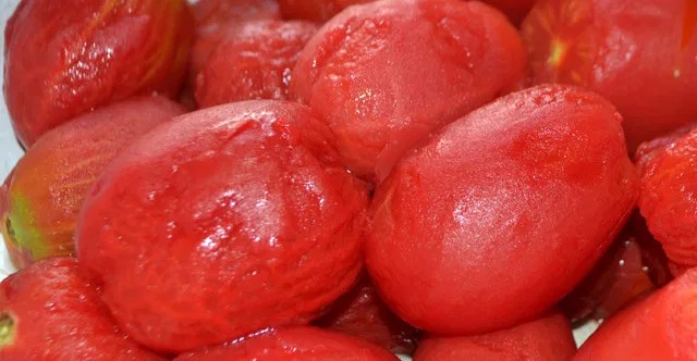 - Nařežte slupku rajčat, spařte je a důkladně zbavte všech slupek oloupáním.
