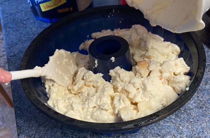 Výslednou směs nalijte do silikonové formy dle vašeho výběru (může být i bábovková). Mikrovlnou troubu nastavte na nejvyšší výkon a formu do ní dejte na 10 minut.