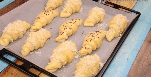 Domácí kynuté croissanty zapečené se strouhaným sýrem - postup přípravy