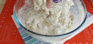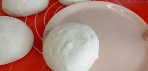 Když je těsto hotové, ručně jej trochu propracujte, zformujte z něho kouli, její povrch i povrch mísy potřete trochou oleje, zakryjte je čistou utěrkou a nechte 30 až 40 minut kynout, dokud těsto nezdvojnásobí svůj původní objem. Po vykynutí těsto vyklopte na lehce pomoučněný vál, rukama ho jemně propracujte, aby zvláčnělo a rozdělte ho na čtyři stejně velké části, které zformujte do tvaru koulí. Vyskládejte je vedle sebe na talíř, zakryjte utěrkou a nechte je chvilku odpočinout.