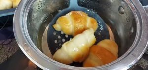Do hrnce nalijte hrnek vody a nasypejte hrnek cukru. Na mírném ohni zahřívejte, dokud se cukr zcela nerozpustí. Pokud chcete, můžete přidat i sáček vanilkového cukru nebo citrónové šťávy. Každý upečený rohlík pak dvakrát až třikrát ponořte do hrnce s cukrovým sirupem, nechte zaschnout a podávejte.