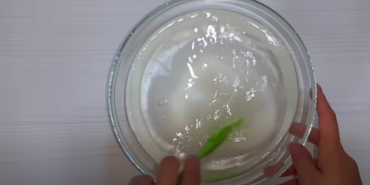 V hrnci přiveďte k varu vodu a nechte ji vychladnout na pokojovou teplotu. Přidejte cukr a míchejte, dokud se všechny krystalky nerozpustí.