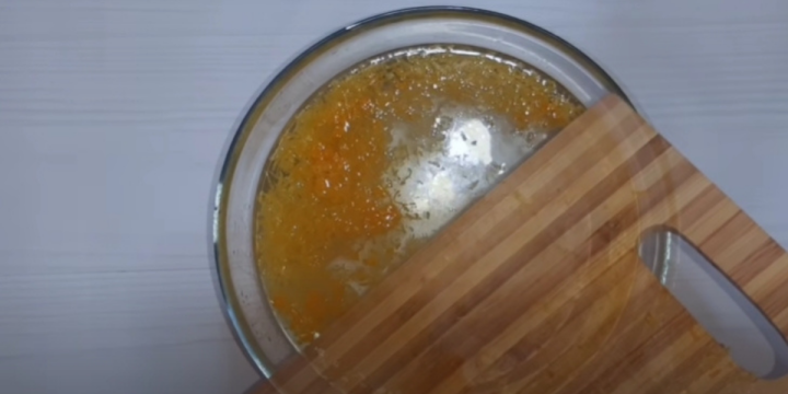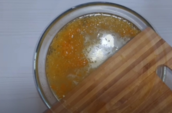 Ostrouhejte kůru z jednoho celého citrónu a z poloviny pomeranče. Dejte pozor, abyste nestrouhli do bílé části, která je hořká a zkazila by vám výslednou chuť nápoje. Kůru přidejte do oslazené vody a promíchejte.
