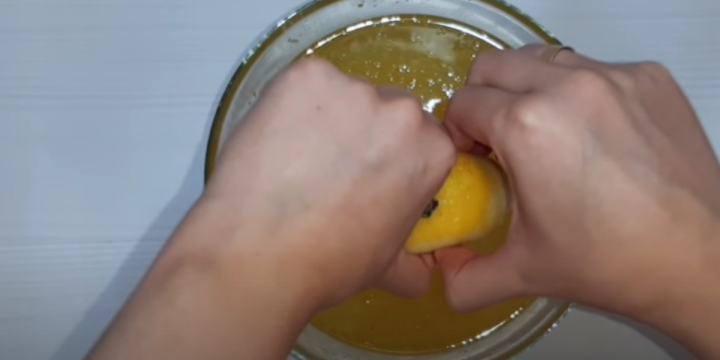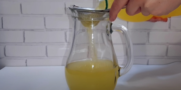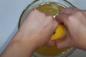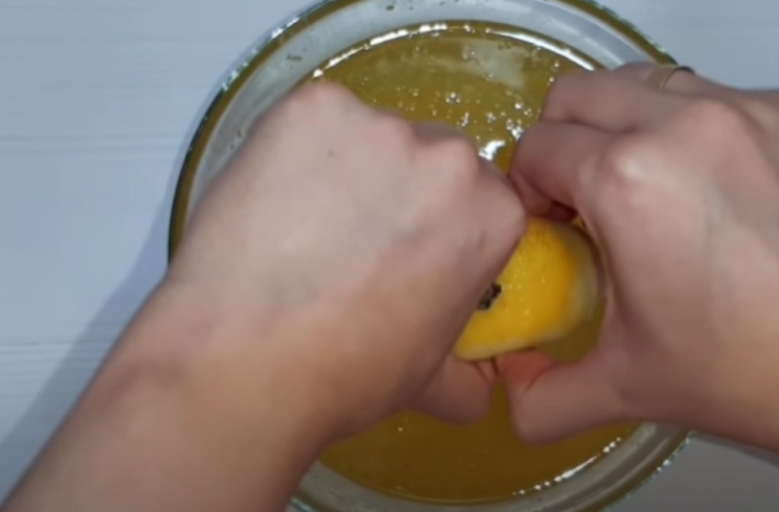 Z citrónu i pomeranče vymačkejte šťávu (půjde to lépe, když před rozkrojením oba plody rukou poválíte po stole, dokud nezměkne) a slijte ji do oslazené vody.