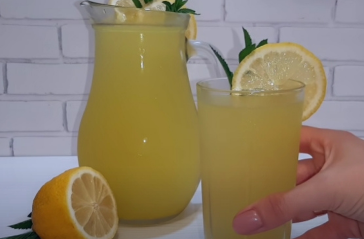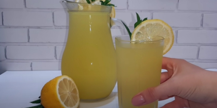 Vychlazenou limonádu slijte přes sítko do karafy a podávejte s plátkem citrónu a lístkem čerstvé máty.