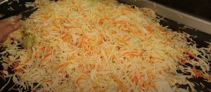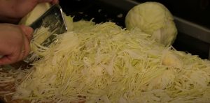 Vezměte čerstvé zelí a oloupejte vnější, špinavé listy. Následně hlávku překrojte na několik kousků a začněte ho opatrně krouhat. Čím jemnější budou jednotlivé kousky, tím chutnější následně výsledek bude. Vyvarujte se toho, aby v zelí zůstávaly tvrdé kusy, ty by měly nejlépe skončit v odpadu.