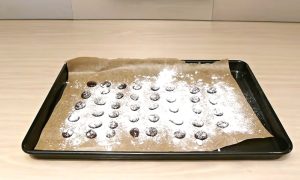 Bonbóny nechte 20 minut chladnout a ztuhnout. Poté je zasypejte moučkovým cukrem, abyste zabránili jejich slepení, proklepejte je a uložte do krabičky vyložené kouskem pečicího papíru.