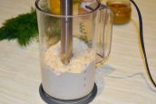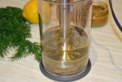 Do vysoké úzké misky od tyčového mixéru rozklepněte jedno vajíčko. Přidejte k němu půl lžičky soli, jednu čajovou lžičku cukru, půl lžičky mletého hořčičného semínka, k tomu stejné množství bílého pepře a nakonec citronovou šťávu a rostlinný olej.