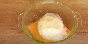 Stěrkou míchejte, dokud nezískáte pružné a nelepivé těsto. Zformujte ho do tvaru koule, zabalte do igelitu a vložte do lednice na 15 minut.