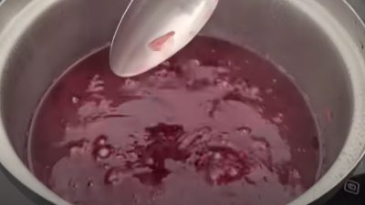 Po půl hodině do tekutiny vmíchejte růže a směs vařte přibližně 20 minut, za občasného míchání. Po této době zkontrolujte konzistenci džemu. Pokud je příliš řídká, směs vařte ještě 5 minut.