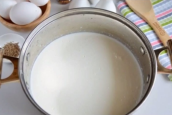 Do většího hrnce nalijte kefír a také mléko. Tekutinu na plotně zahřívejte na středním plamenu, neměla by se však vařit.