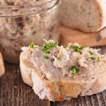 Výslednou paštiku pak z misky mixéru důkladně vyškrábejte do misky, vyrovnejte její povrch špachtlí, zakryjte ji igelitovou potravinářskou fólií a vložte do lednice chladit zhruba 8 hodin nebo přes noc, aby se příchuti surovin rozležely a paštika ztuhla.