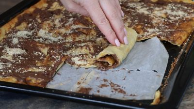 Z kokosového těsta oddělujte malé kousky (velikost si přizpůsobte vašim vlastním představám a preferencím) a formujte z nich tyčinky, které rozložte na plech či tác vyložený pečicím papírem. Ty pak vložte na jednu hodinu do lednice, aby hmota důkladně ztuhla.